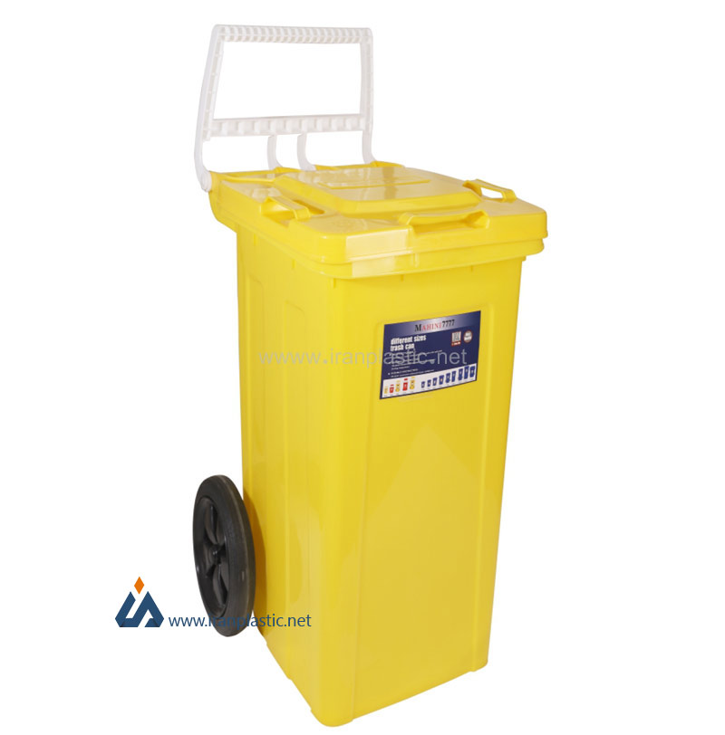 سطل زباله چرخ دار 70 لیتری با دسته ماهینی پلاستیک