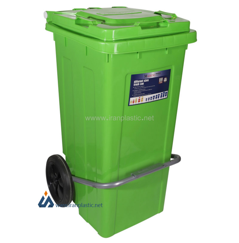 سطل زباله 100 لیتری چرخ دار و پدال دار ماهینی پلاستیک
